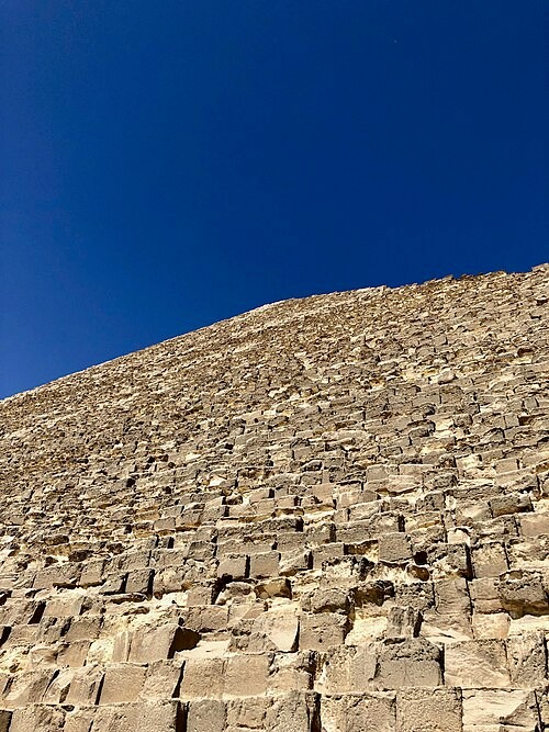 Great Pyramid of Giza, Egypt’s largest pyramid built from limestone blocks, illustrating the monumental stone masonry whose precision and interlocking joints enabled centuries of survival. Source