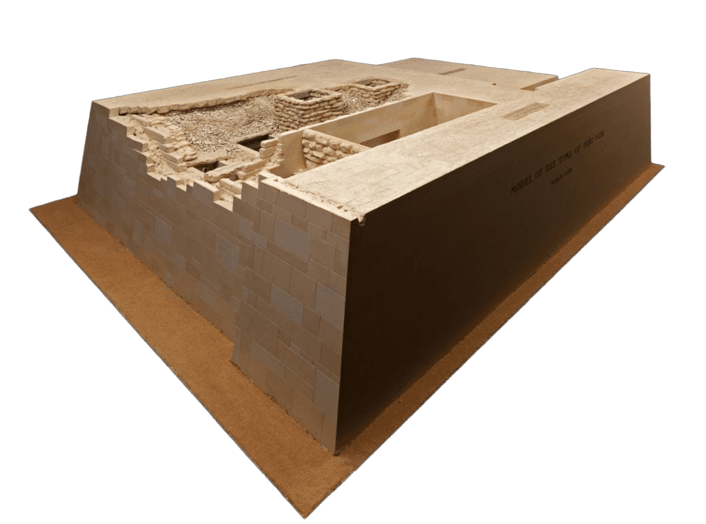 Late in Dynasty 5, the palace administrator Perneb built a tomb at Saqqara, twenty miles south of Giza. The tomb included an underground burial chamber and a limestone building called a mastaba. - Source